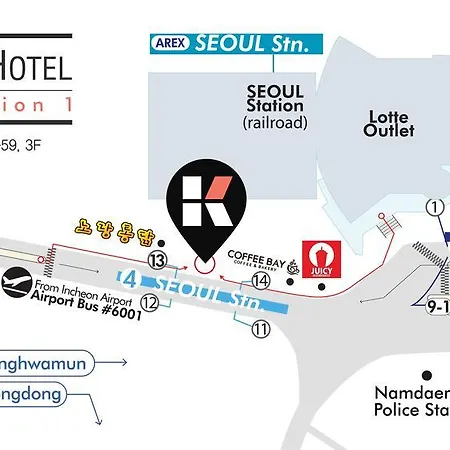 L'auberge de jeunesse de 2 étoiles K-Grand Hotel Seoul est située à 5 minutes de la station de métro la gare de Séoul et à 5 minutes de la gare de Séoul. Cette auberge offre 30 chambres proposant une TV, une clé électronique (carte) et une climatisation.