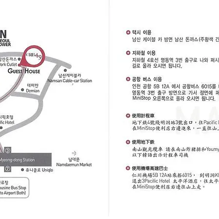 크립 49 게스트 하우스 - 외국인 전용 호텔은 서울 김포 공항에서 20km 거리에 위치해 있으며 Myeong-dong Grand Hyatt Shuttle 버스 정류장에서 450m 떨어져 있습니다.